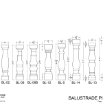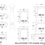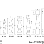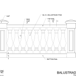 Architectural precast concrete or GFRC balustrade system. System includes top rail, pin and bottom rail.